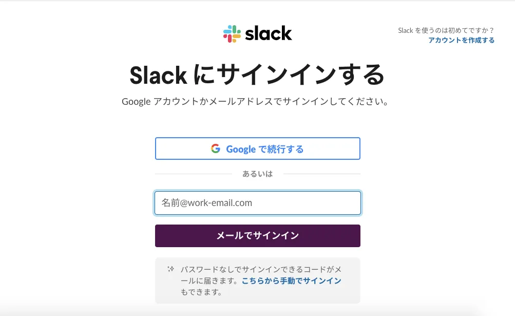 - メールアドレスでSlackアカウントを作成する