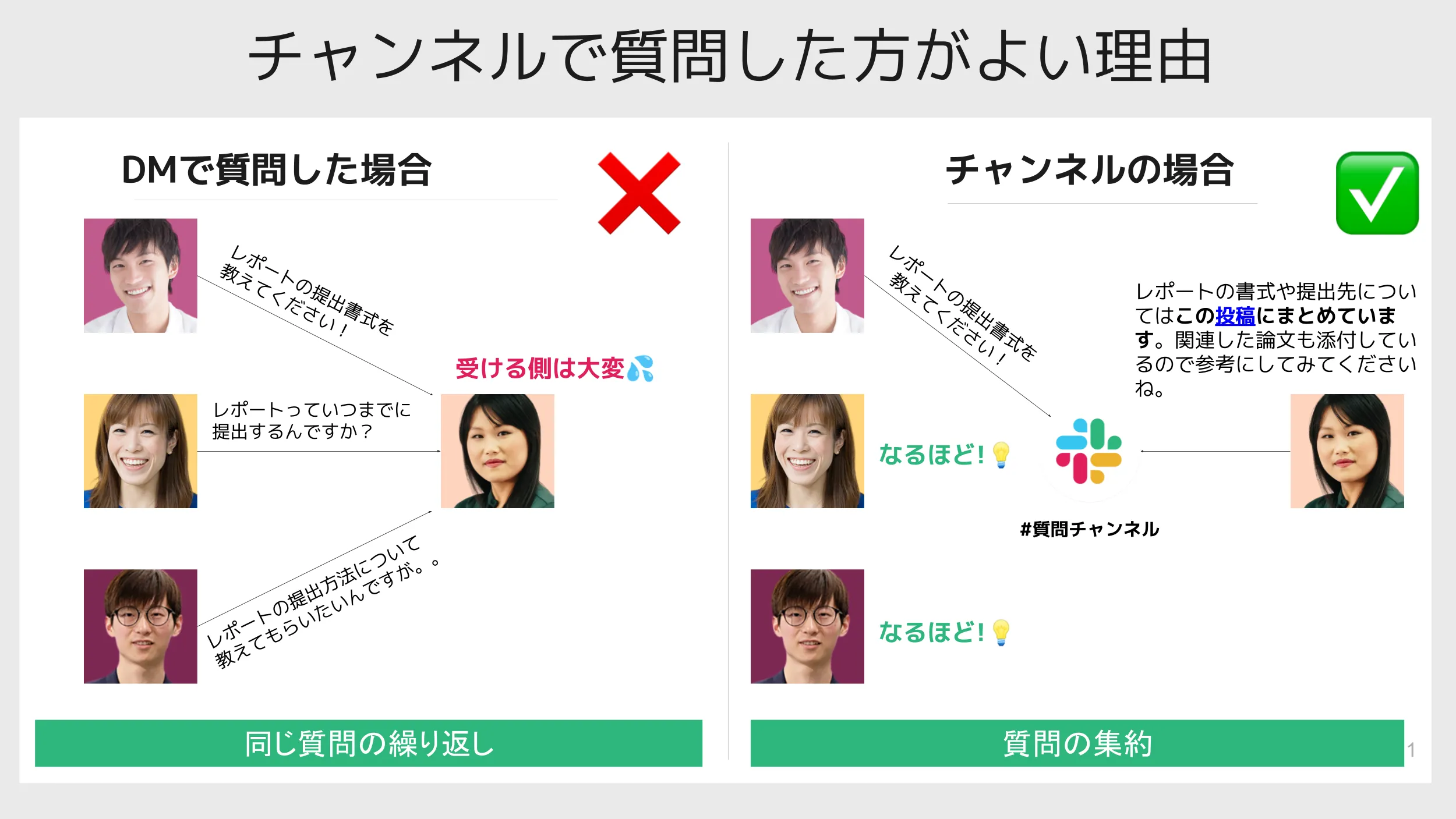 Tips:質問はチャンネルで受け付けることを推奨