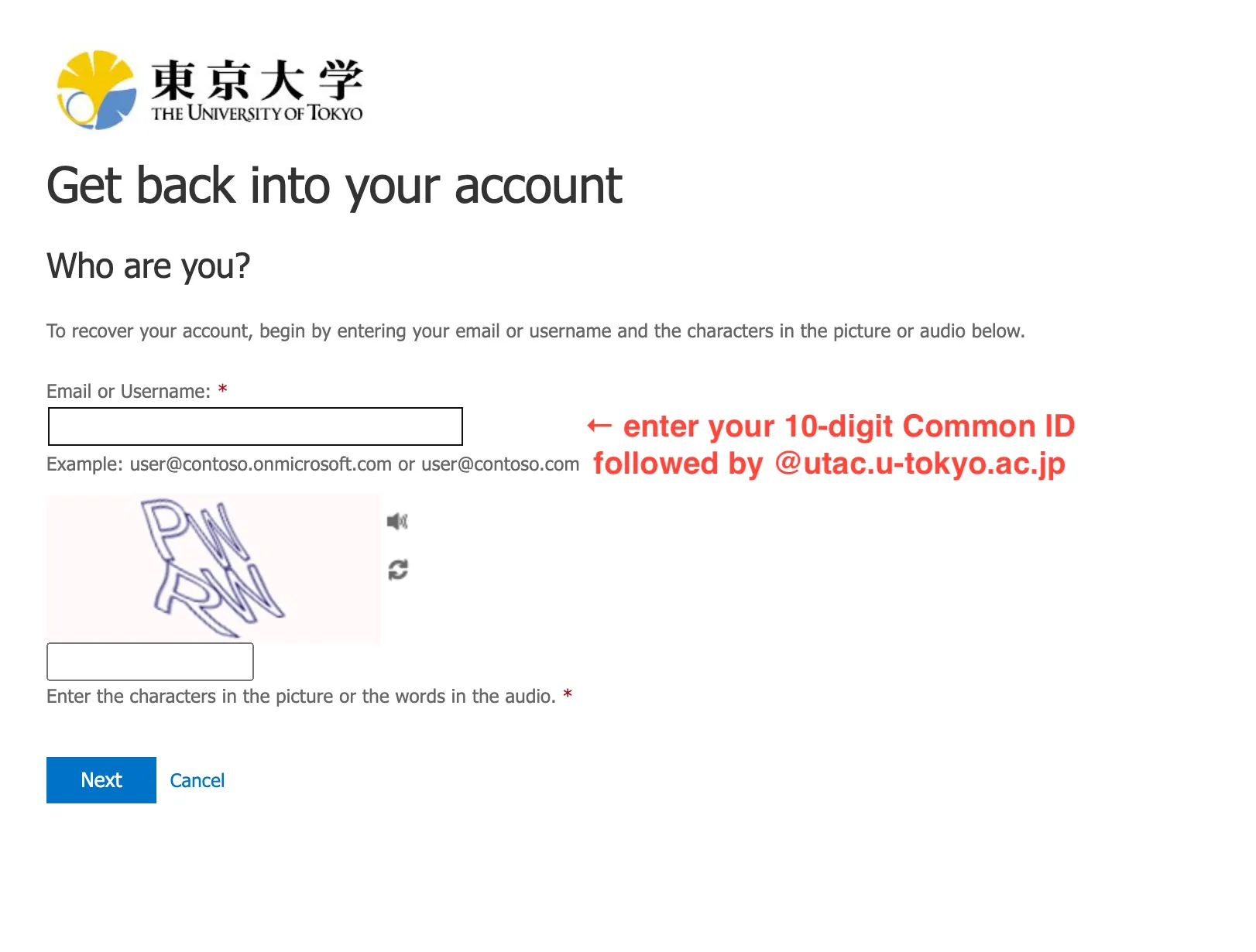 - When you fail to sign in to your UTokyo Account and want to reset it (e.g., when you have forgotten your password or need to reconfigure multi-factor authentication).