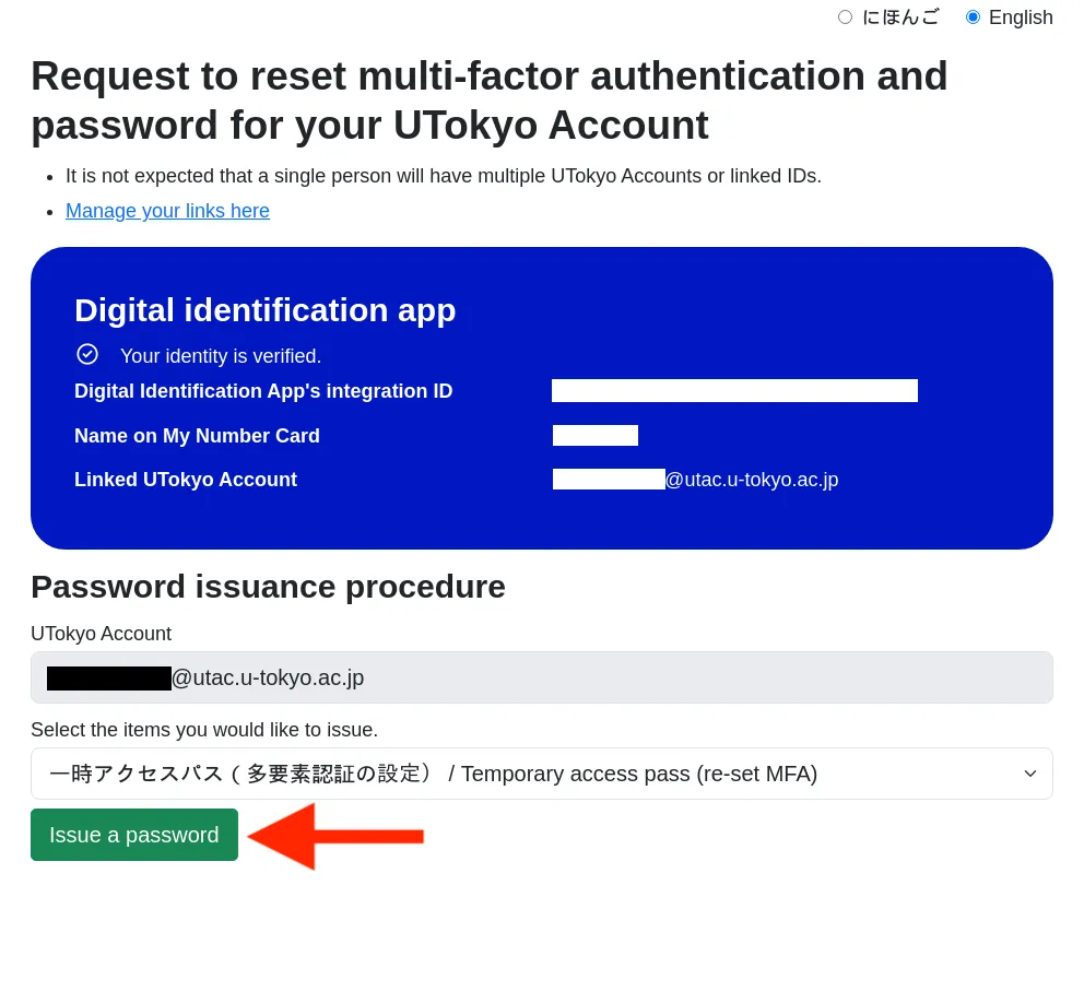 - You must have completed the pre-link for the UTokyo Account Identity Verification Service.