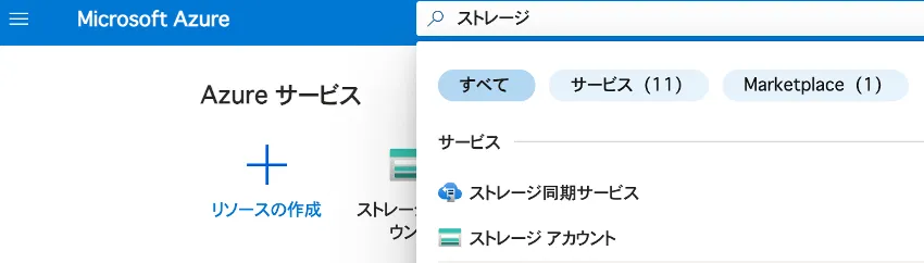 - Azureサービスの検索で“ストレージ”と検索すると表示される,