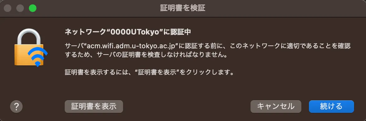 このページでは,macOS 13 Venturaの端末でUTokyo Wi-Fiを利用する際の具体的な操作手順について説明します.